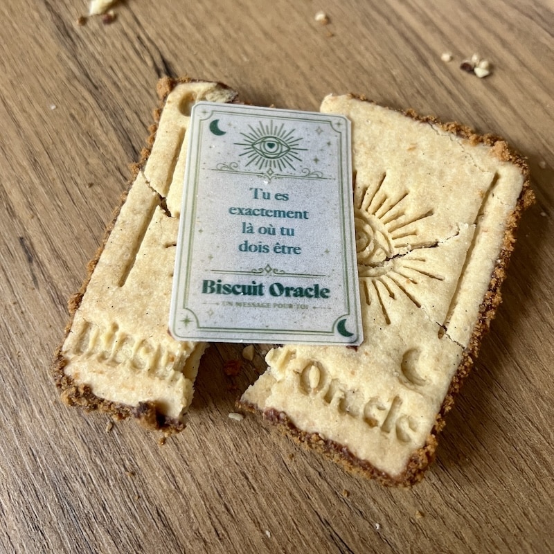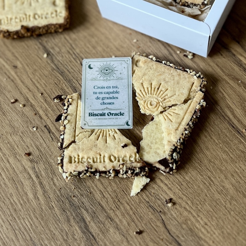 Chaque biscuit cache un message à découvrir à l’intérieur, un petit oracle gourmand. Une fois ouvert, il révèle quelques mots choisis avec soin, pensés pour toucher, réconforter ou éclairer.