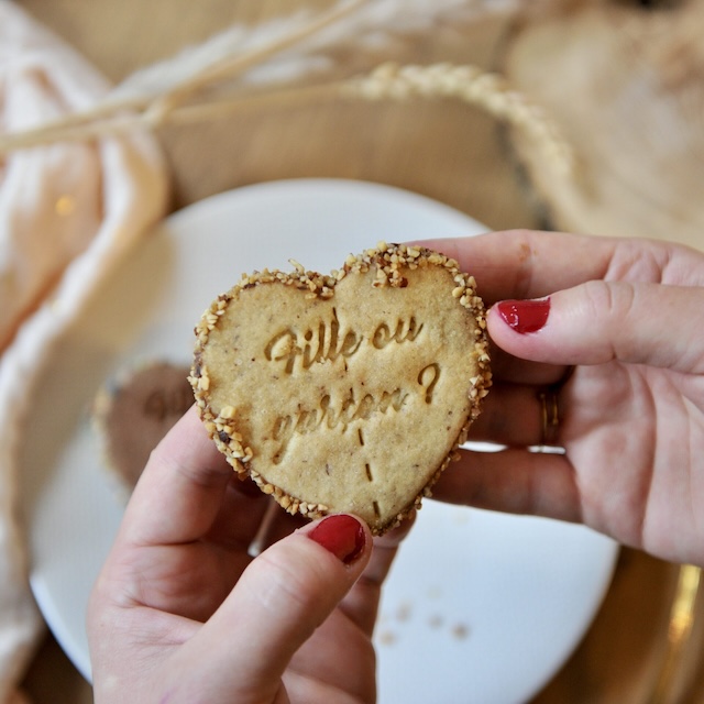 Tampon d’écriture utilisé sur le biscuit : “Fille ou garçon ?”