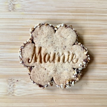 Biscuit décoré à l’aide d’un tampon alimentaire avec l’inscription : « Mamie ».